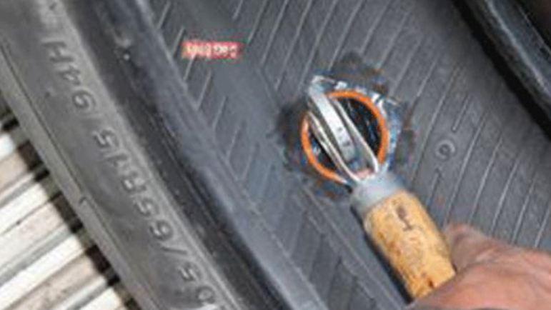 轮胎胎面被钉子、螺丝等直径小于6毫米的尖锐物体刺穿。